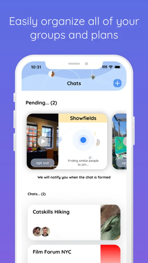 PlanOut makes it seamless to streamline social activities with existing friends and new people. If you want to join a new escapade, or simply want new things to do, this is a must-have app for you! Go on an exciting trip, watch movies, go to the gym, and more! It's good to take a break from a busy life once in a while. Use PlanOut to look through fun activities you would like to participate in. You can pin these activities into your group chat, then set up a poll, so you and your friends can vote on your favorite activity. You can also make a new buddy, partner, or simply join a group of people you can relate to. With PlanOut, it's all about prioritizing your happiness and having fun.