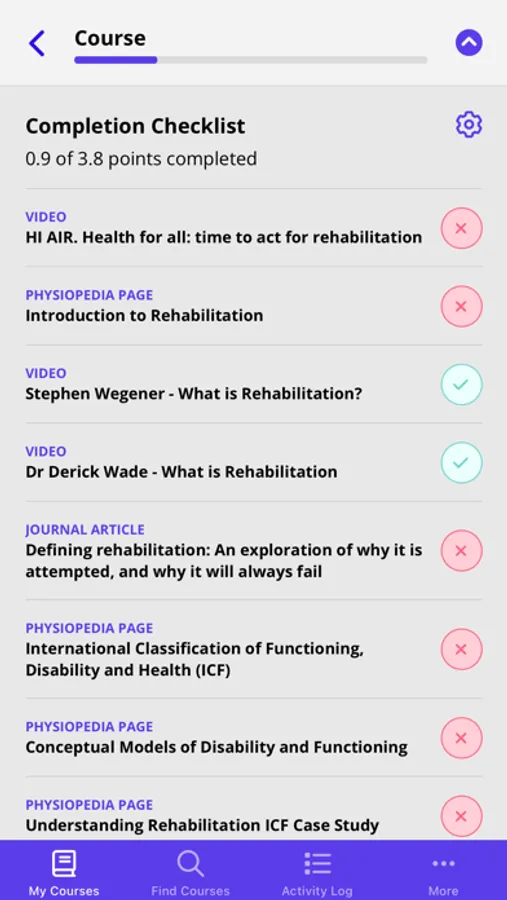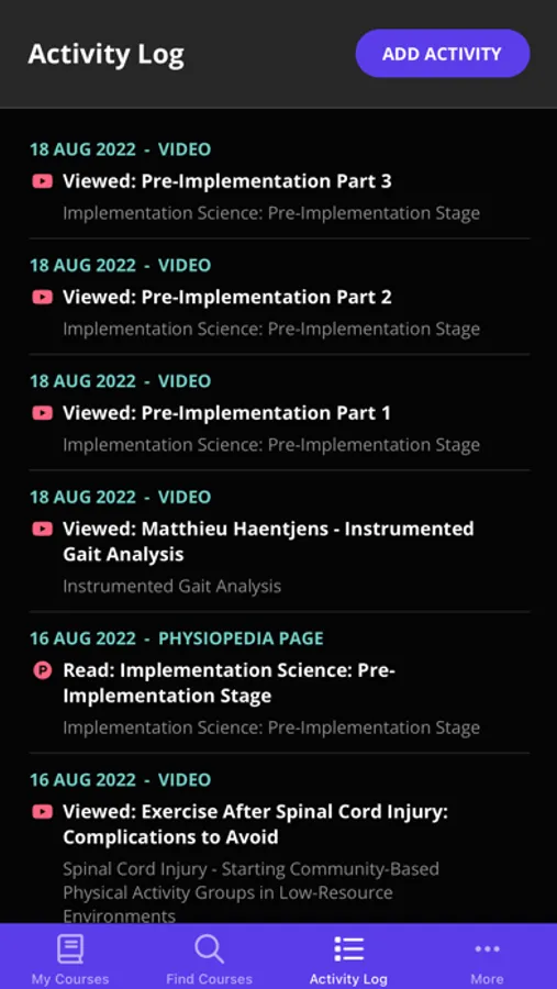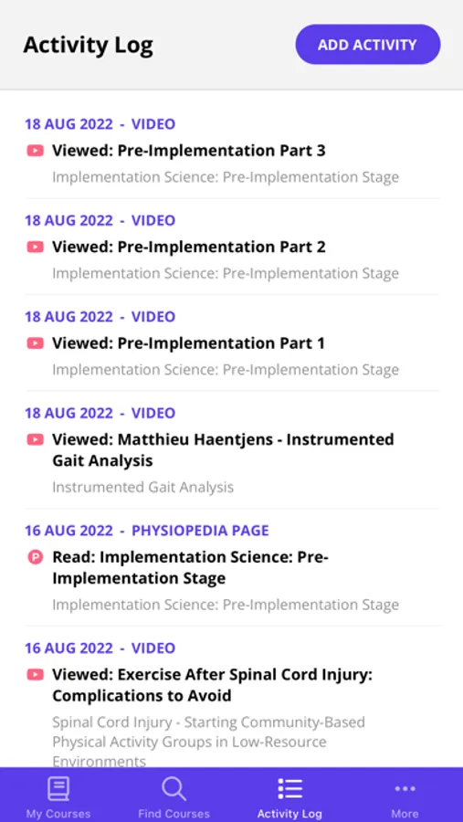 When doing the Plus courses, you will have access to videos, articles, quizzes and a wide range of additional resources, which you can track by accessing your activity log. All the activities you complete on the app will be synchronised with your professional portfolio on the Plus website and vice versa.