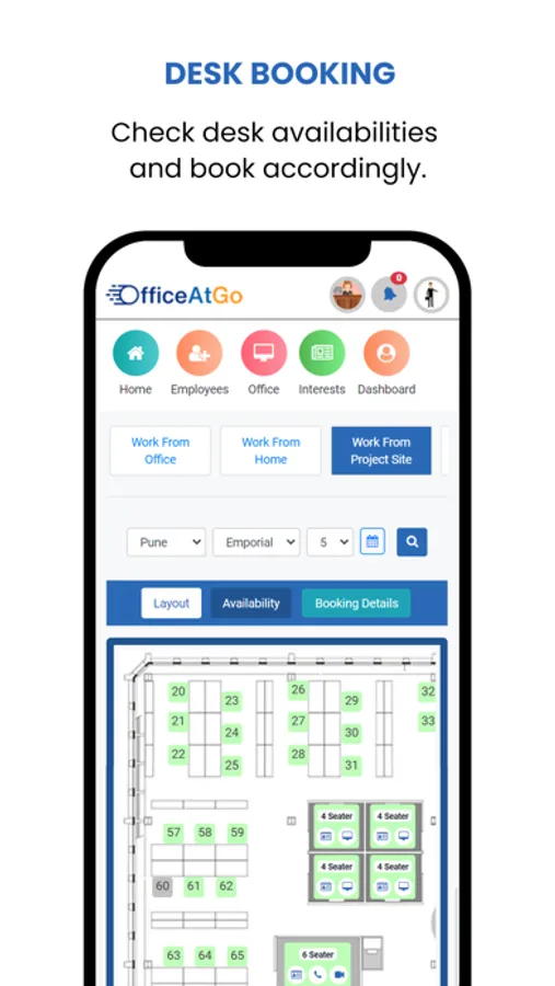 Office At Go is a full feature Desk & Meeting Room Booking and Employee Management App to optimize your work environment and employee engagement and productivity. The different features of App are modular & scalable and Companies can choose which features they would want OR all the features. Office At Go aims to provide a digital replica of your office and comfort that Employees and Office Admins have always been looking for. This App provides you with features that can easily enable your company to move to Hybrid Work Environment with Analytics. Office At Go also encourages in-office connect and community building. The database is stored in a secured AWS cloud environment.