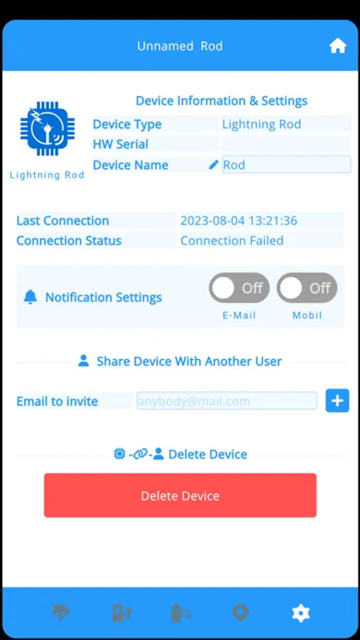 * You can mark the place where your lightning rod devices are mounted on the map and see their geographical locations.