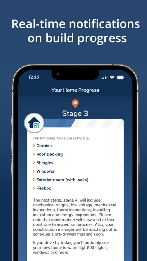 With the MyHighland homeowner companion app, get real-time notifications on your home's build progress, access to your floor plan details, maintenance reminders, easy service request submissions, and more!