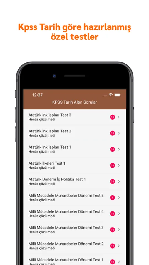 Kpss Tarih Altın Sorular uygulama aracılığı ile kpss tarihe hazırlanmak çok daha kolay. Özenle hazırlanmış testler ile konuları öğrenirken bir yandan da o konuya özel farklı soruları görebilirsin. İleri de gelecek tarih kısa bilgiler bölümü ile tarihde olan önemli olayları öğrenebileceksin.
