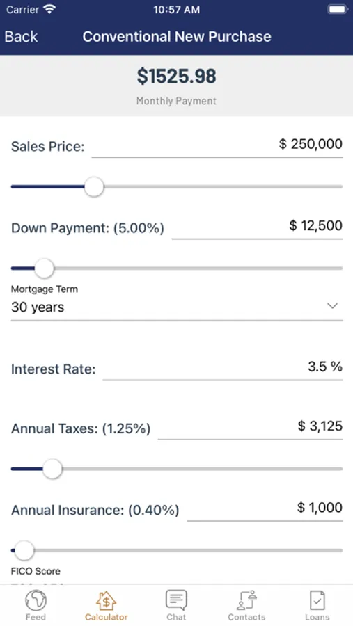 Calculate scenarios based on down payment amount, interest rate, and other variables