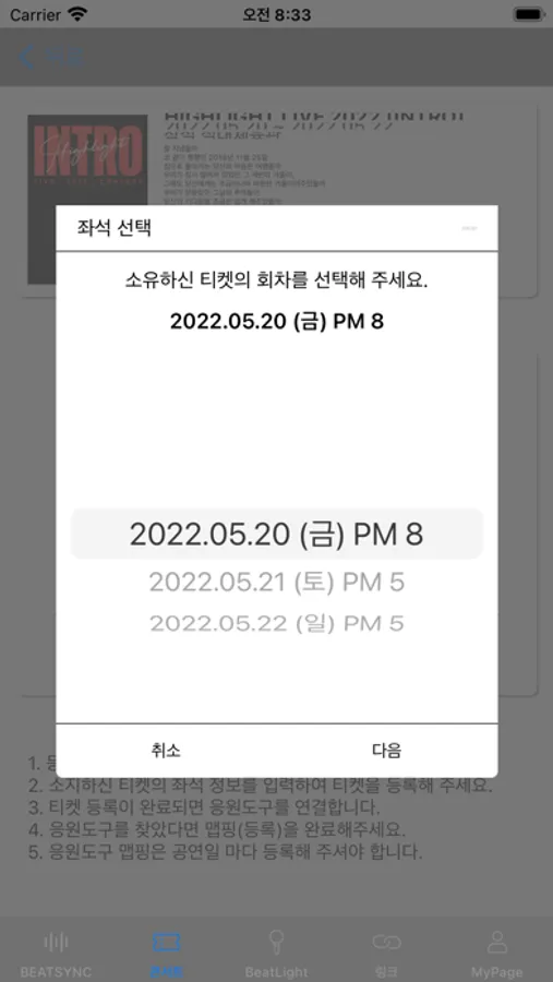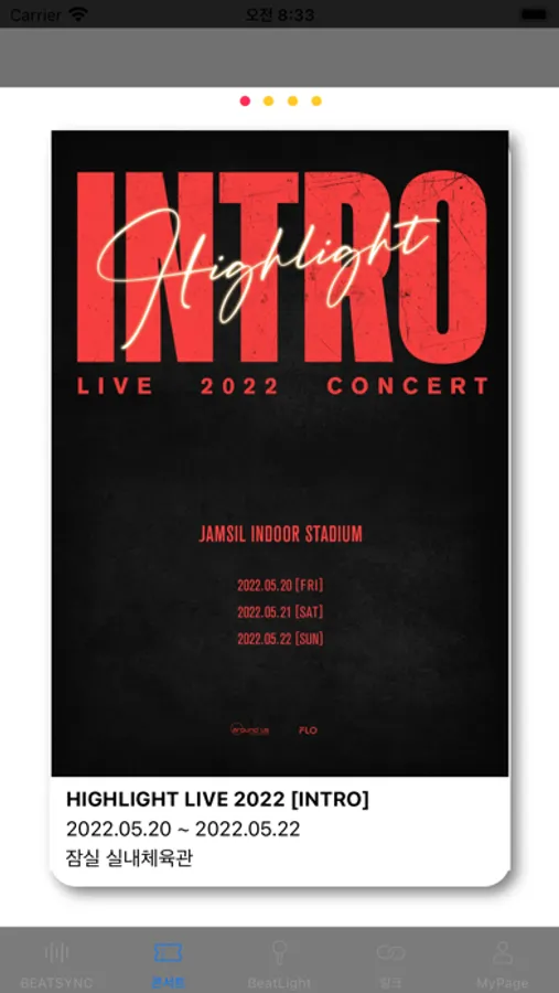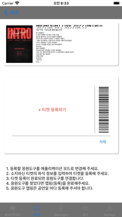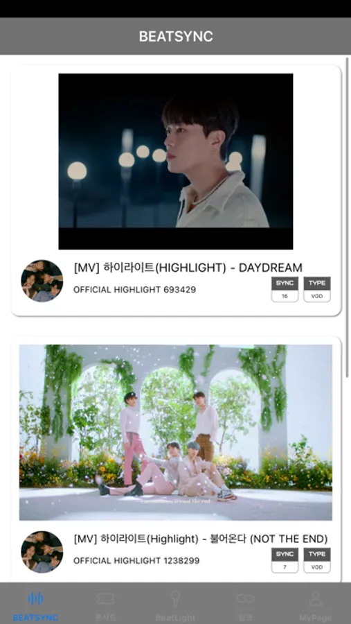 하이라이트 뮤직비디오 및 영상 싱크에 맞춰 공식응원봉이 컨트롤되는 온라인 전용 서비스 입니다.