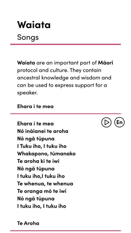 - Tap to hear pronunciation of te reo Māori words