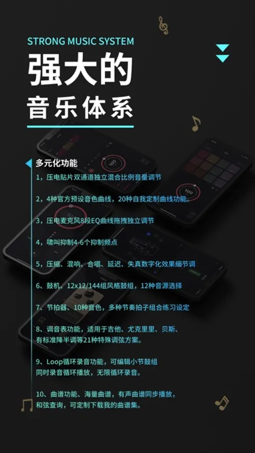10. Music score function, massive music scores, synchronous playback of audio scores, chord query, and customizable download of my music score collection.