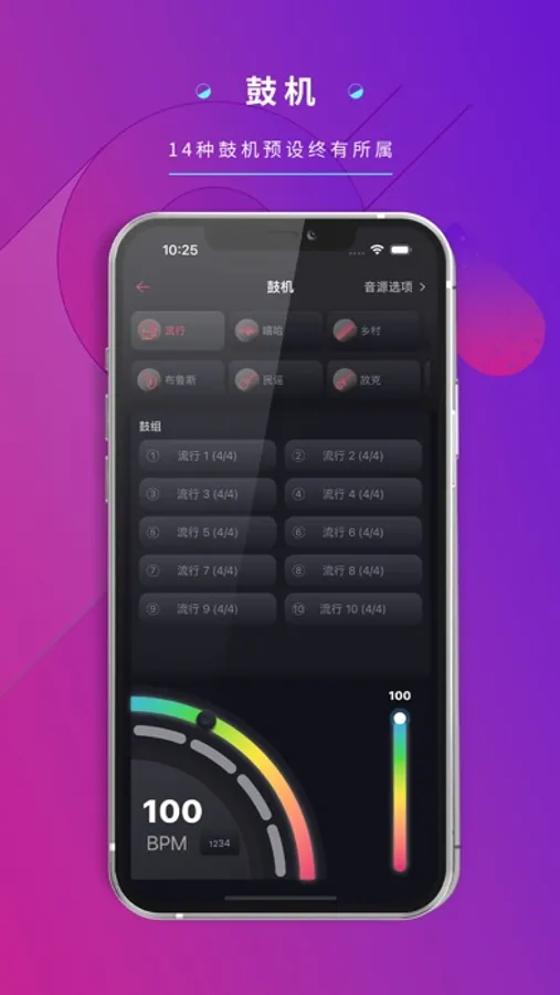 7. Metronome, 10 timbres, and various rhythm and beat combination practice settings