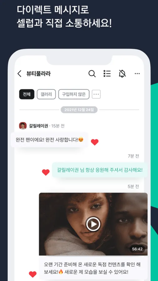 - 팬과 함께 할 수 있는 크리에이터 전용 페이지 구축