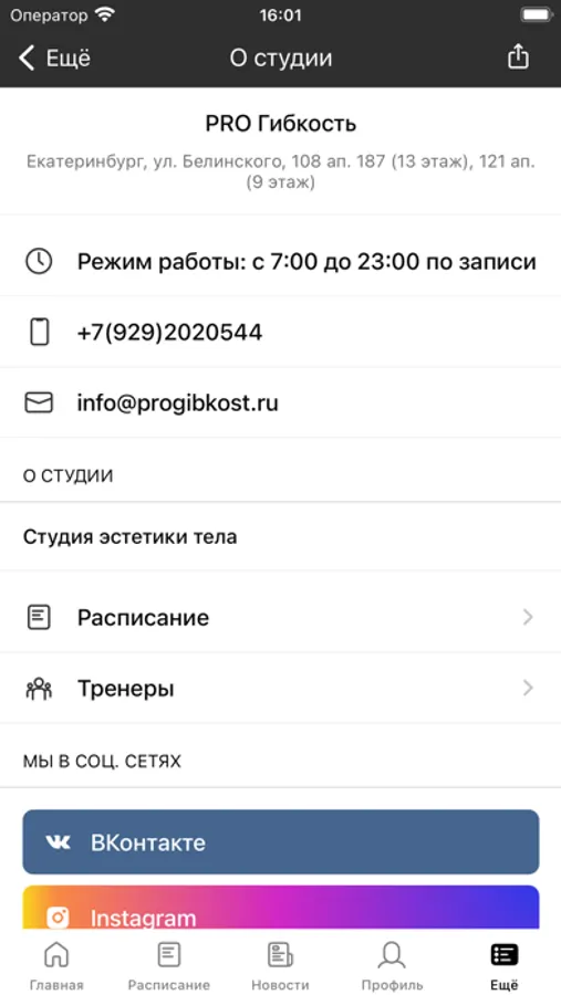 С помощью приложения вы можете следить за новостями, расписанием студии, записываться на занятия, отслеживать свои посещения, получать информацию о специальных предложениях