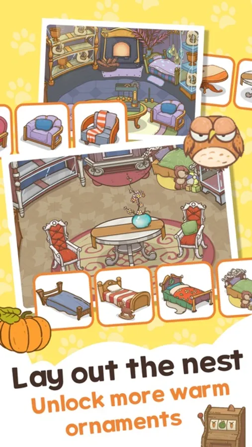 - Wooden House: Choose furniture to decorate the wooden house and make it warm;