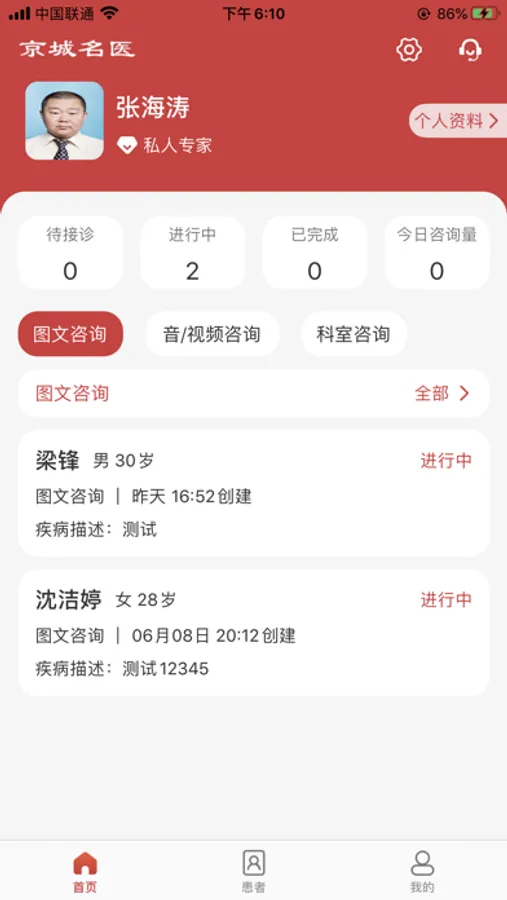 京城名医(医护版)帮助医生实现患者个人管理、分组管理、图文咨询、视频咨询,发布文章,查看患者评价,自助管理服务价格与规则等功能,方便医患交流,提升服务满意度等功能