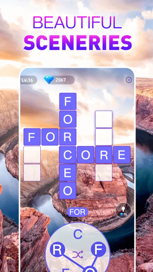 You may shuffle the letters or use hints if you are stuck on any puzzle.