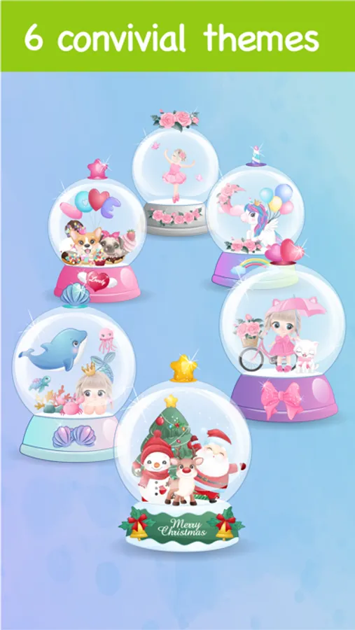 Snow Globe DIY is a free casual game that you can build your own snow globes from scratch. It's all up to you how your dreamy and beautiful crystal globe would be like. Select your favorite stand, content, snow, luminous light and fascinating tunes. All kinds of unique combinations with your own choice. You cannot refrain yourself from creating more and more with all our well selected accessories and ornaments.