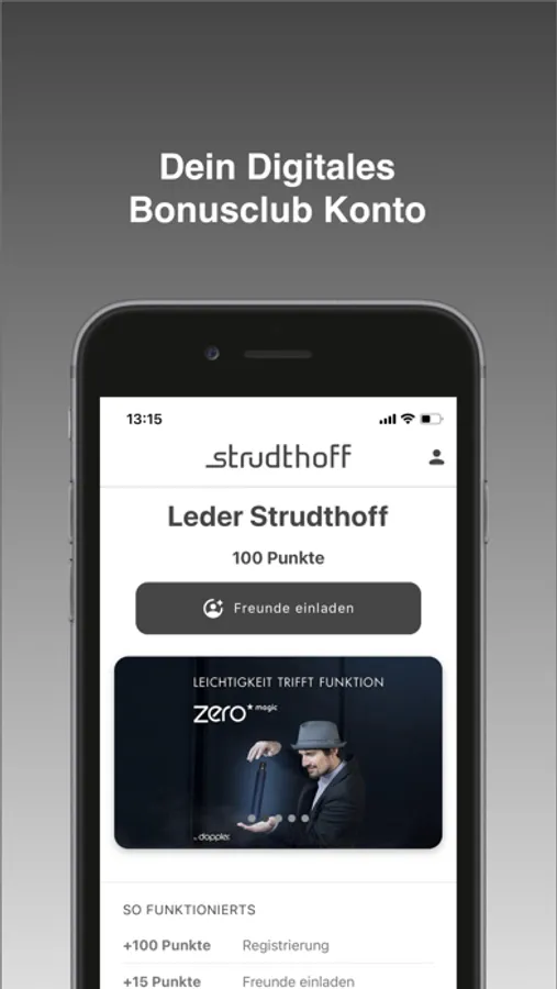 Die Leder Strudthoff-App ist dein digitales Treueprogramm! Du kannst ganz einfach durch unterschiedliche Aktivitäten Punkte sammeln und diese gegen tolle Prämien einlösen.