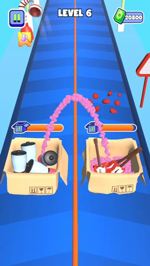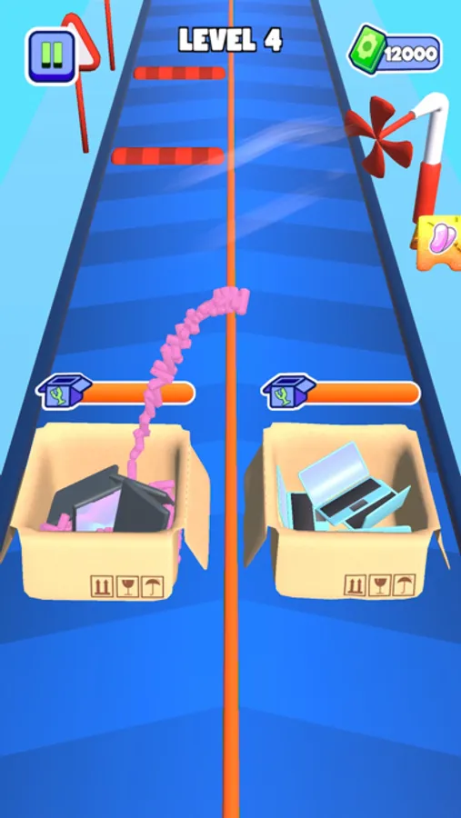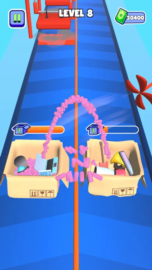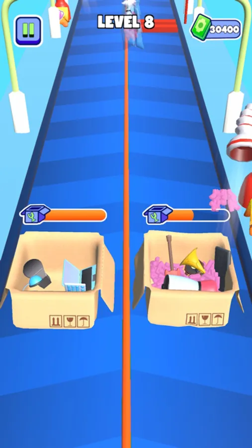 Transfer peanuts from one box to another, keep the balance and minimize the damage. Kicky delivery guy, speed bump and vacuum are only some of the obstacles on your path. Tap and hold to transfer peanuts and reduce the damage on each box!