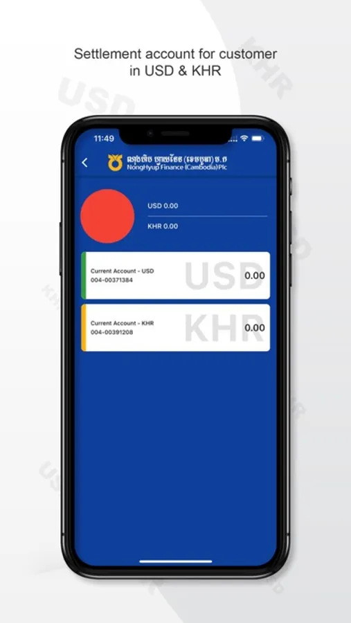 NH Finance App is representing to NongHyup Finance (Cambodia) Plc is a Micro Finance providing digital platform to existing and new customer in Cambodia. We are developed NH Finance Mobile App for help existing customer to query their information related to loan information as like: Schedule Repayment with NongHyup Finance, their next due amount, their loan account’s activities with detail transactions, their settlement account’s activities with detail transactions and marketing promotion notification.