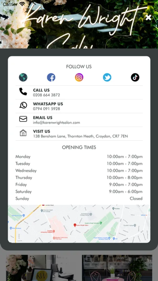 The Karen Wright booking app allows clients to log on and make bookings online under their own profile 24/7. Clients can track loyalty points, look at historical and future bookings, and get directions for their favourite salon.