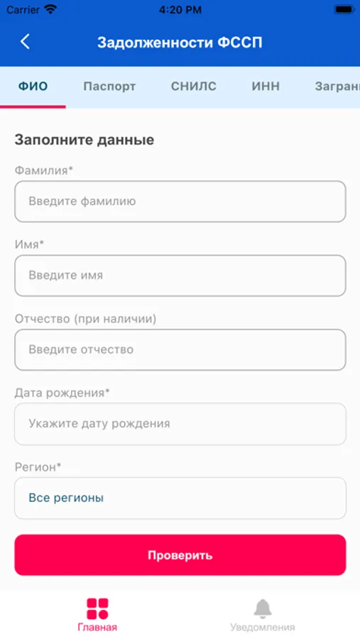 • проверить долги ФССП по кредитам и коммунальным платежам.