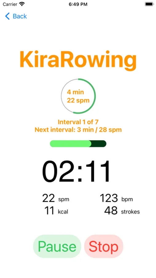 KiraRowing can be used without an Apple Watch. In this case, a bluetooth heart-rate sensor is recommended to measuring the heart rate and the strokes counted based on the stroke per minute target.