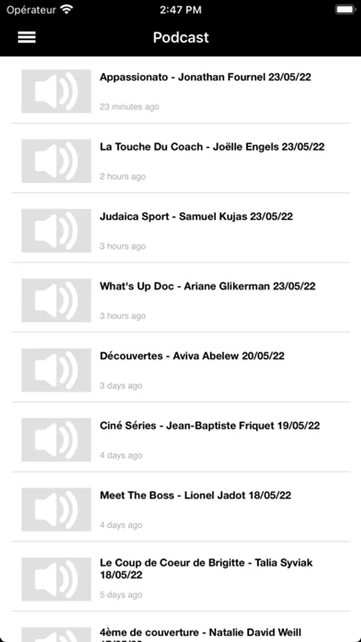 - Tous les podcasts en replay (Meet the Boss, La Matinale, On Joue la Prolongation, Cherchez l'erreur...)