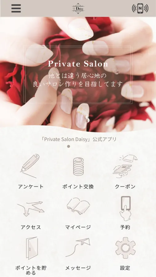 このアプリでは、Daisyの最新情報の受け取りや便利な機能を使う事ができます。