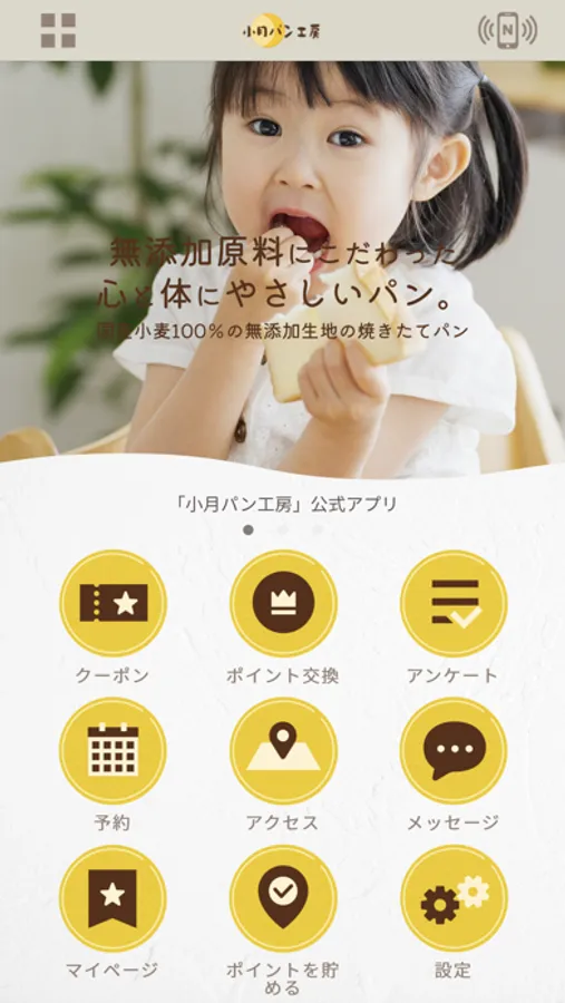 このアプリでは、小月パン工房の最新情報の受け取りや便利な機能を使う事ができます。