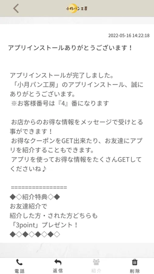 小月パン工房のアプリをSNSを通じてお友達に紹介する事ができます。