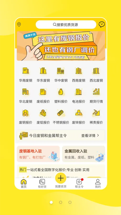 废钢之家APP是一个再生资源、废料回收、废品回收、二手设备、回收市场的信息服务平台。