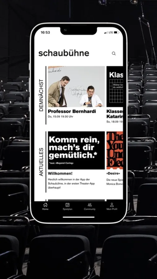 Mit dieser App behältst du den besten Überblick über alle Veranstaltungen der Schaubühne und gelangst schnell und einfach zu deinem Ticket. Lege dir Wunschlisten an oder markiere Favoriten und gehöre zu den Ersten, die informiert werden. Du kannst dich auch mit deinen Freund_innen im Community-Bereich verbinden. Die Mediathek hält vielerlei Videoformate, Lesungen, Podcasts und Bilder zum Stöbern für dich bereit.