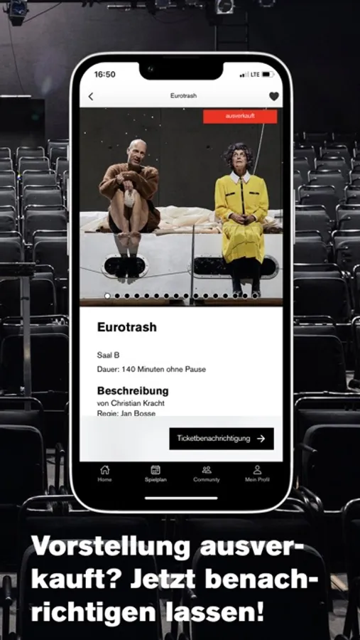Erhalte Benachrichtigungen, wenn wieder Tickets für eine bestimmte Vorstellung verfügbar sind, sodass du als Erste_r zugreifen kannst.