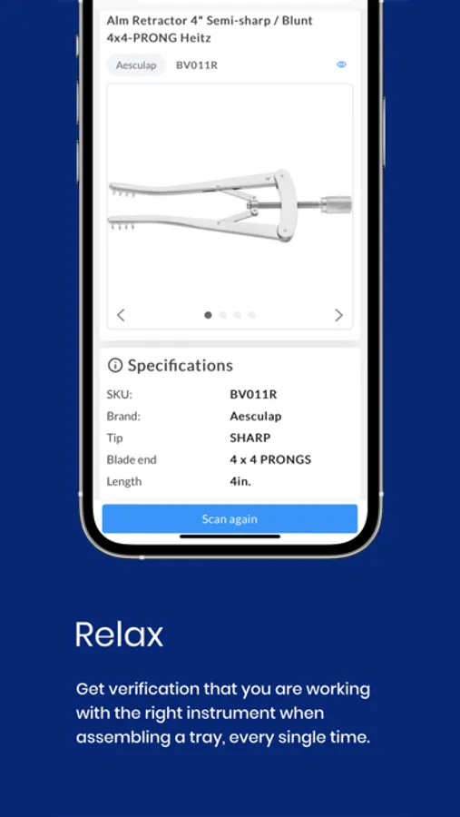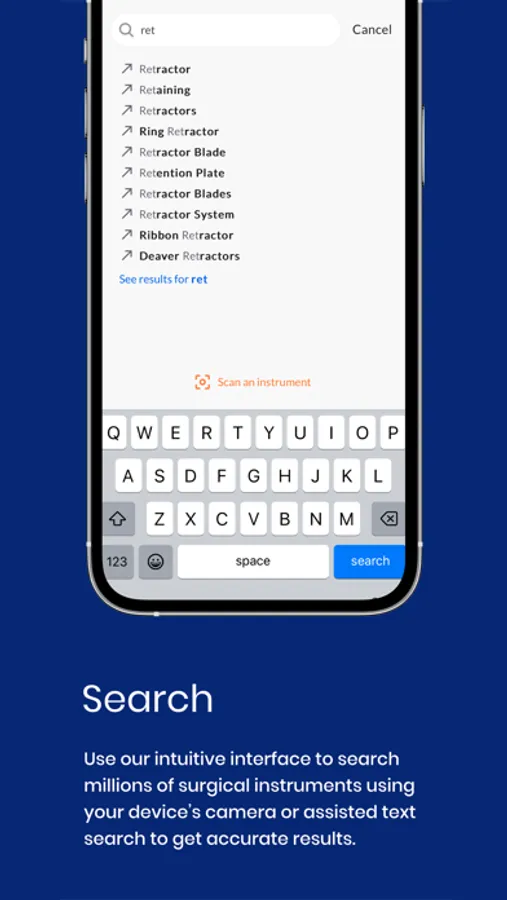 Using Computer Vision and powerful search functions including text, voice, and image options, SID makes accurate instrument identification and verification a breeze. SID is comprised of an ever-growing index of surgical instruments that can be utilized in many different ways to adapt to the needs of facilities both large and small.
