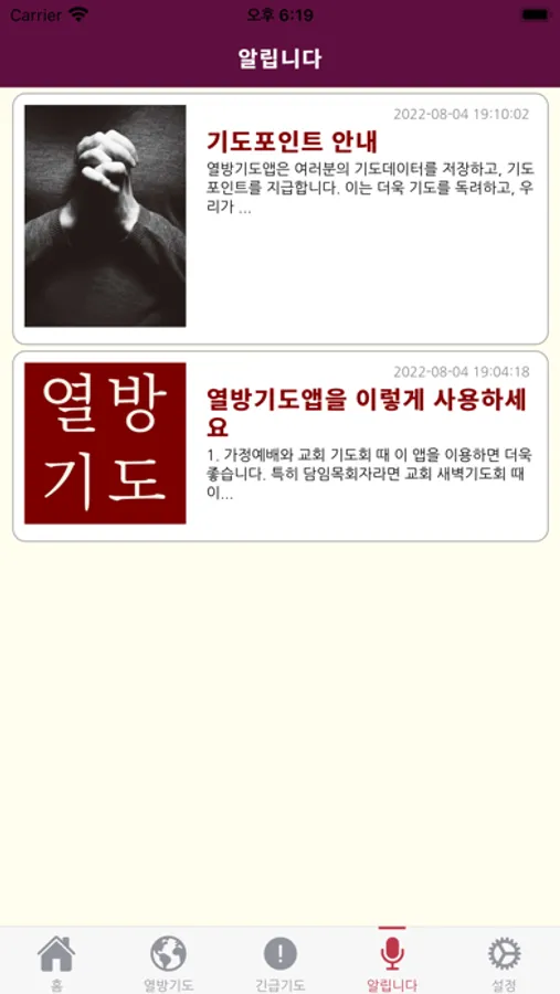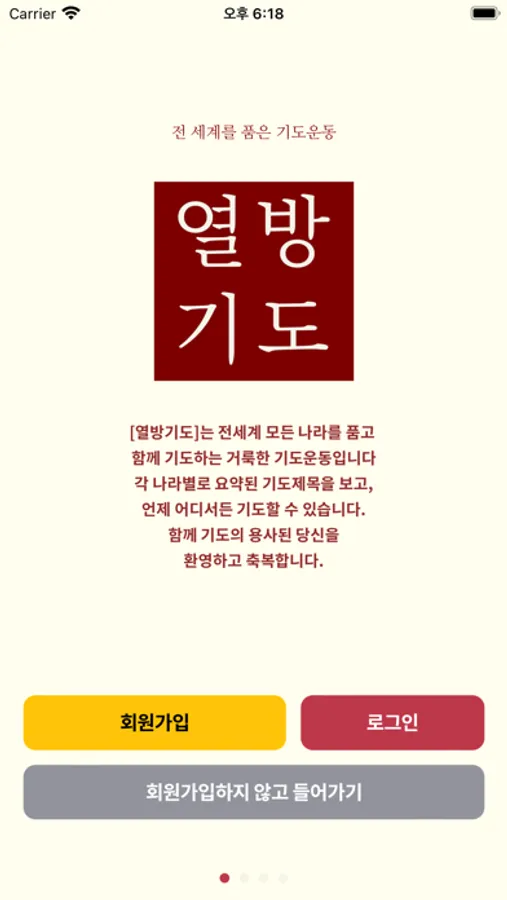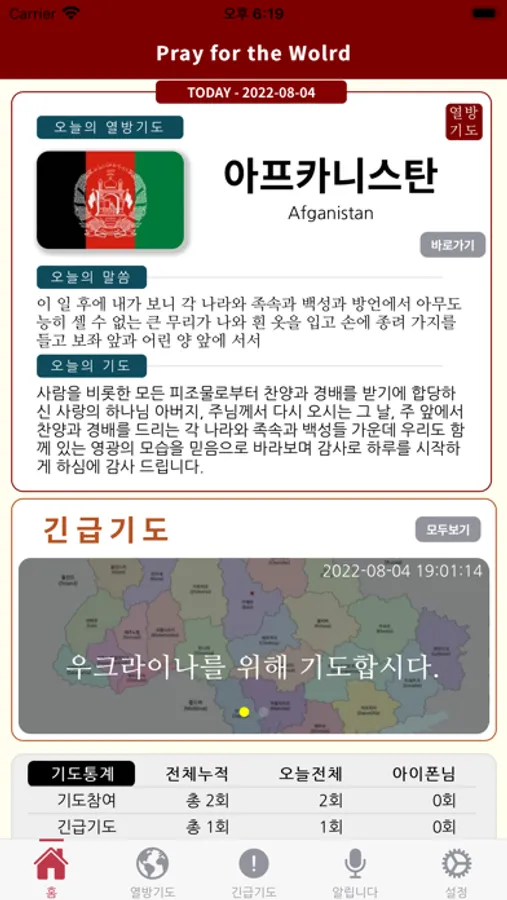 이 앱은 열방의 기도제목을 각 나라의 기본 정보와 함께 중요하면서도 장기적인 기도제목을 중심으로 매일 매일의 분량으로 나누어 놓았습니다. 1년이면 모든 나라를 위해 기도할 수 있다. 성취감을 돕기 위해 기도 포인트를 제공하고, 기도포인트에 따라 등급별 뺏지도 지불할 것입니다. 단지 기도에 참여했을 때는 1점, 댓글기도를 달았을 때는 5점 등 참여도에 따라 포인트를 달리 하여 더욱 열심히 지속적으로 참여할 수 있게 구성되었습니다.