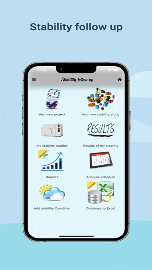Simple and powerful tool to follow up your stability studies, intervals, analysis, results and make reports of your studies through the below :-