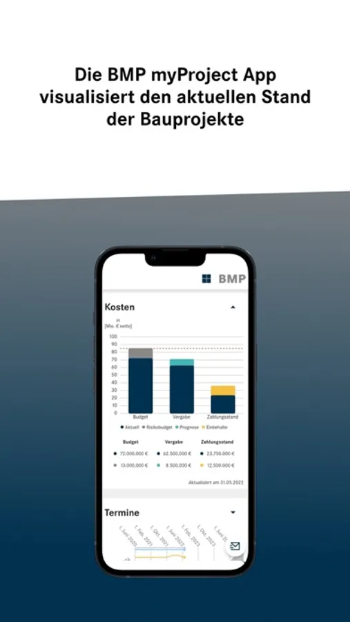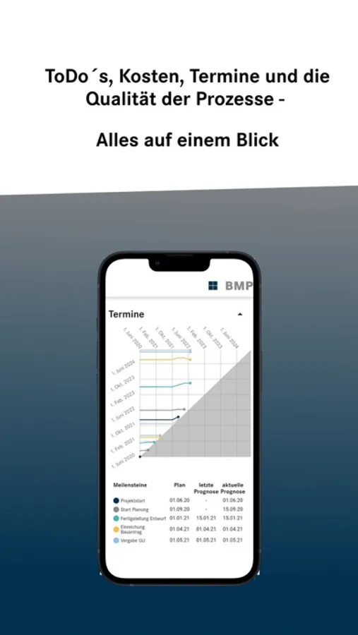 Um im Rahmen dieser komplexen Bauprojekte stets den Überblick über den aktuellen Projektstatus bei der Hand zu haben, bietet die BMP myProject-App einen schnelle Information zu den wesentlichen Projektdaten: