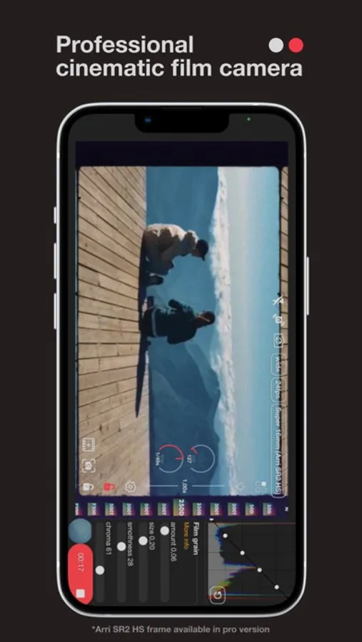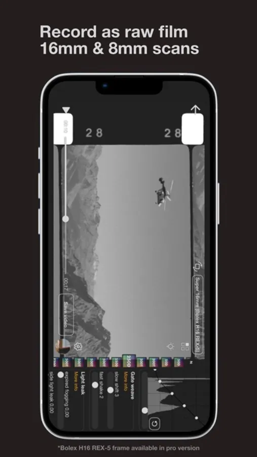 Super 16 allows you to change the focus and exposure settings, adjust the zoom for better shooting of various scenes. Camera shoots at authentic 24fps that creates movie effect. All parameters (including processing features) can be changed during the recording.