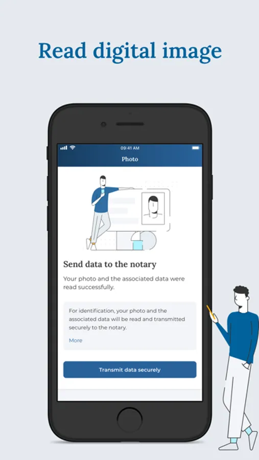 The reading of your german eID card as well as the reading of a digital photo from a qualified document in the online procedure can easily and securely be done with the Notary App.