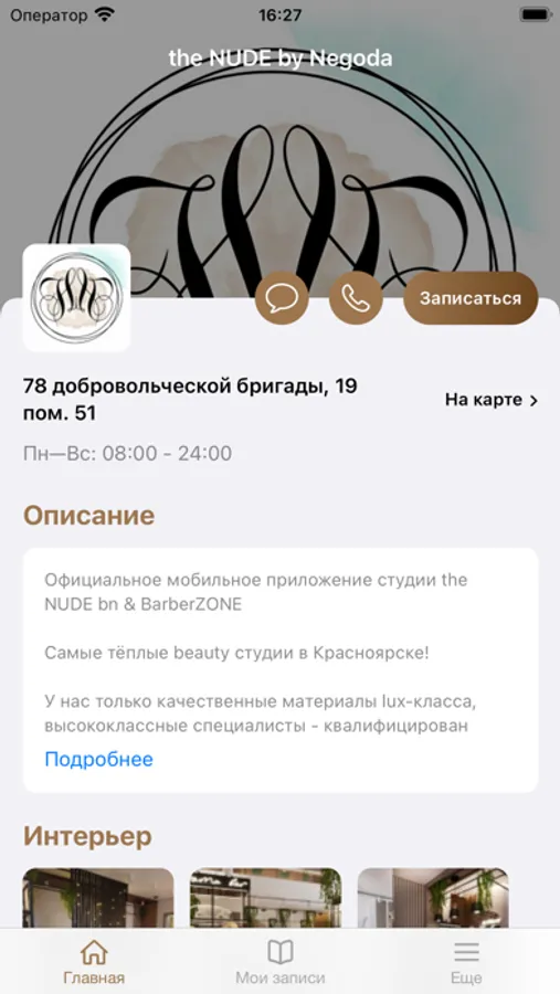 Официальное мобильное приложение студии the NUDE bn & BarberZONE