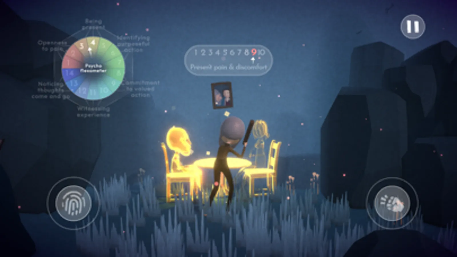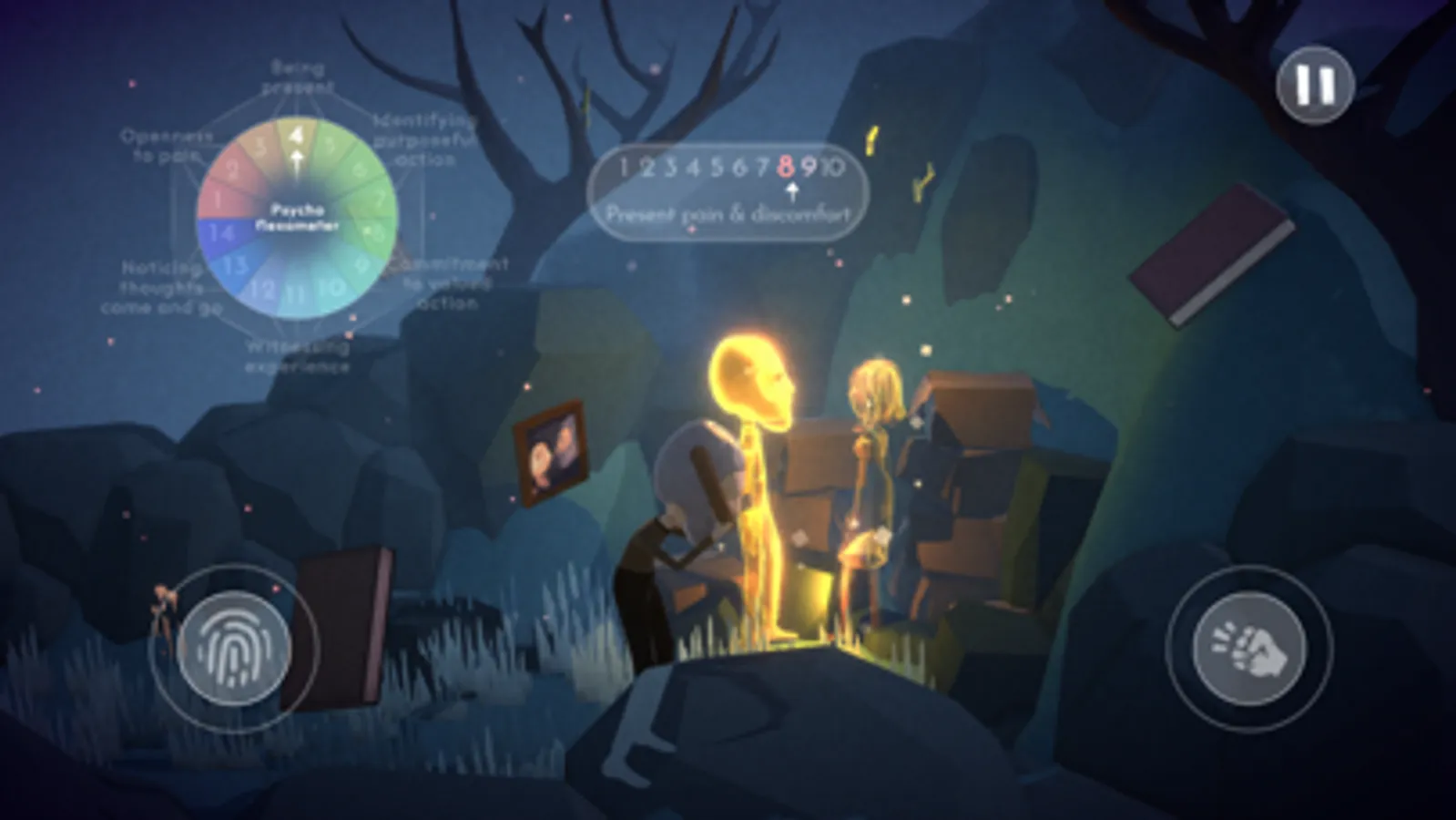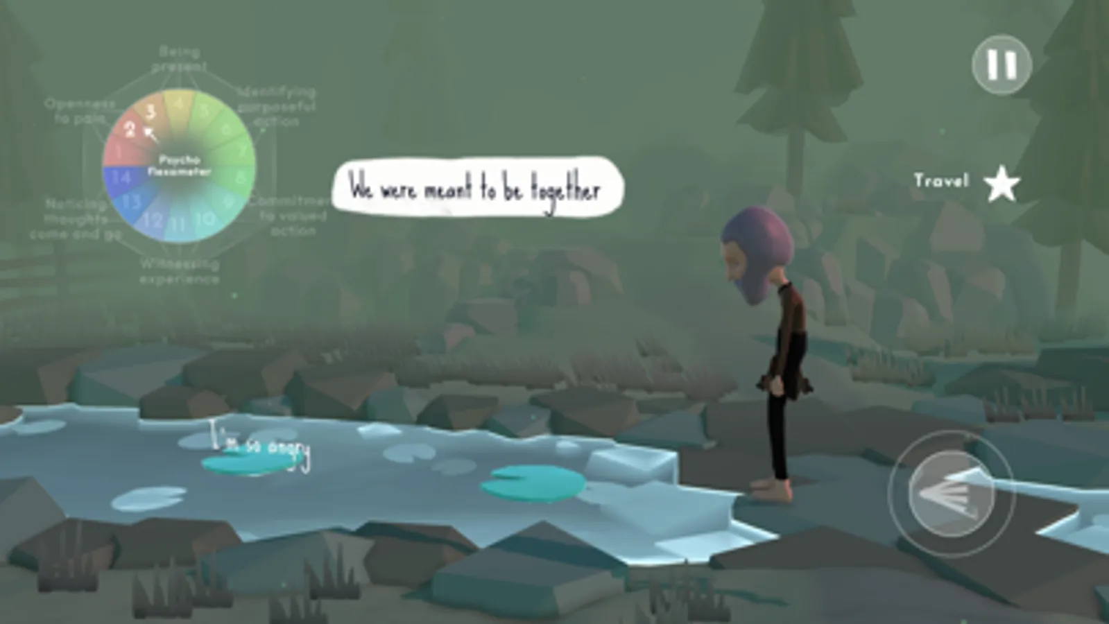 This game (directed by Dr. Darren J. Edwards of Swansea University) is based on a psychological therapy called acceptance and commitment therapy (ACT). You will learn about how to use ACT in your life through embedded learning. This game is not a replacement for any professional psychological help should you need it, rather it will introduce you to some basic principles of ACT through playing the game.
