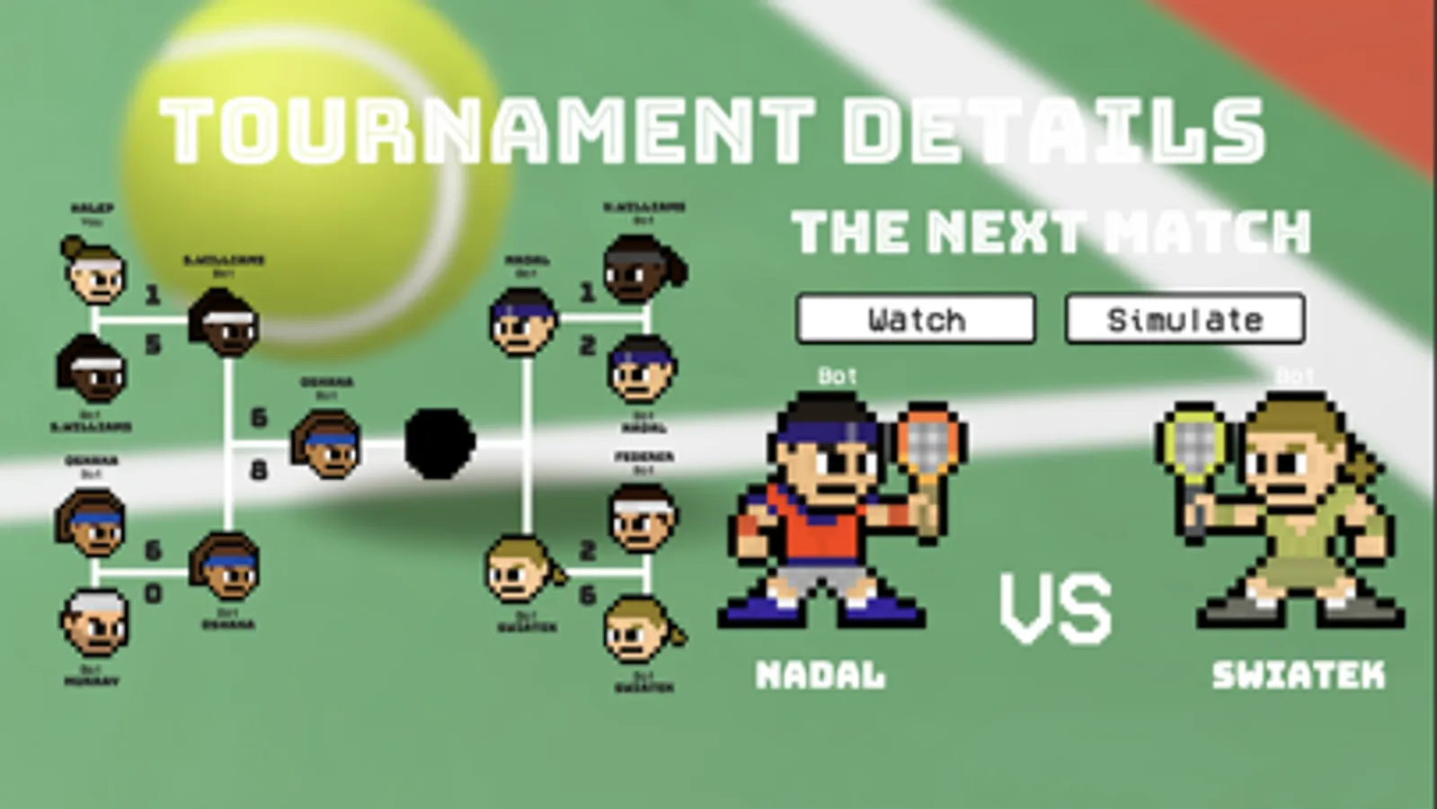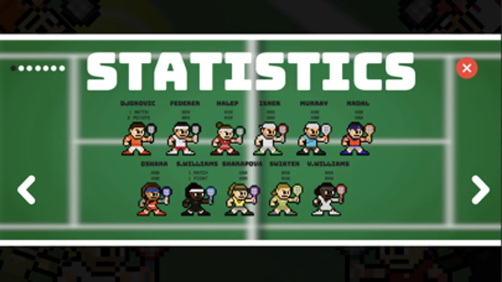 Pick your favorite tennis player and start the match. Try to get as many points as possible and not concede even one in this pixel tennis game.