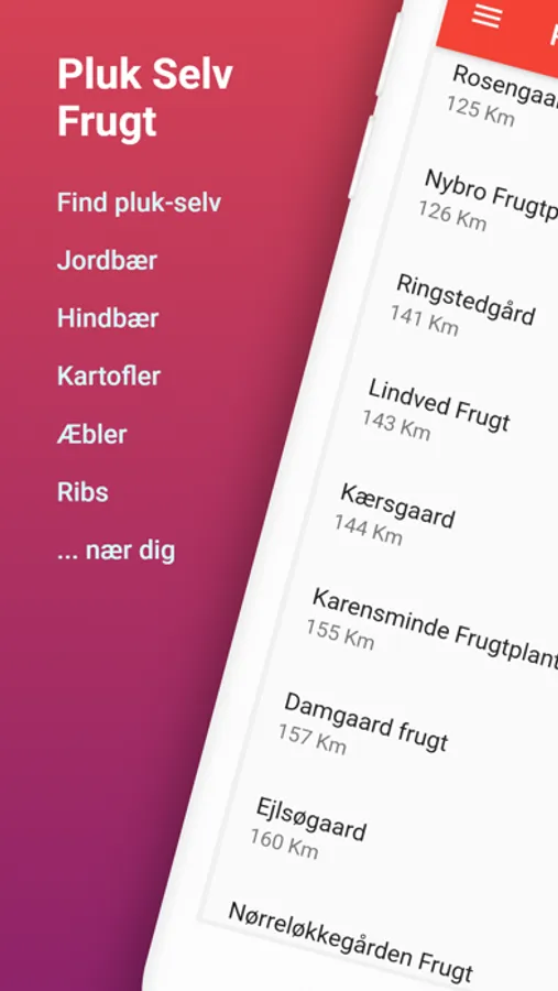 Baseret på din lokation kan du se pluk selv plantager i nærheden af dig - så du slipper for at lede.