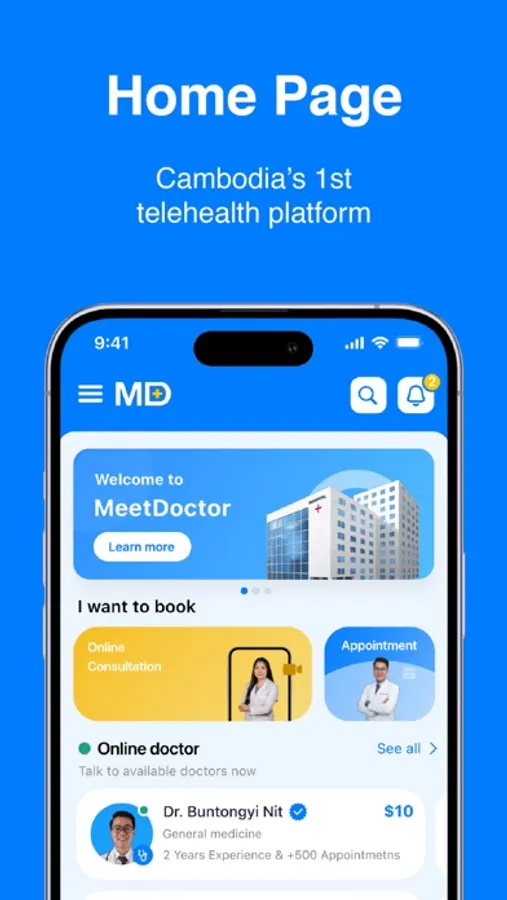 MeetDoctor, Cambodia’s fastest growing telemedicine app that was just built by Cambodian doctors. It is a one-stop solution for all your healthcare and medical needs where you can: