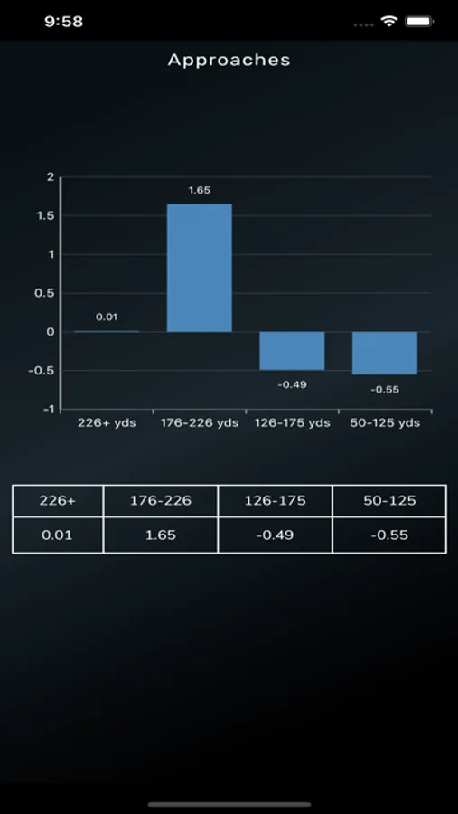 - The 4 categories of Driving, Approach, Short Game and Putting are displayed in each circle