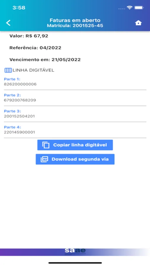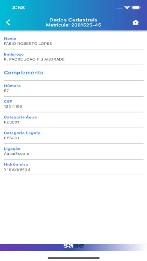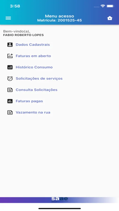 - Alerte ao SAAE sobre eventuais ocorrências, serviços ou reparos na rede de água ou esgoto, podendo fotografar e informar localização;