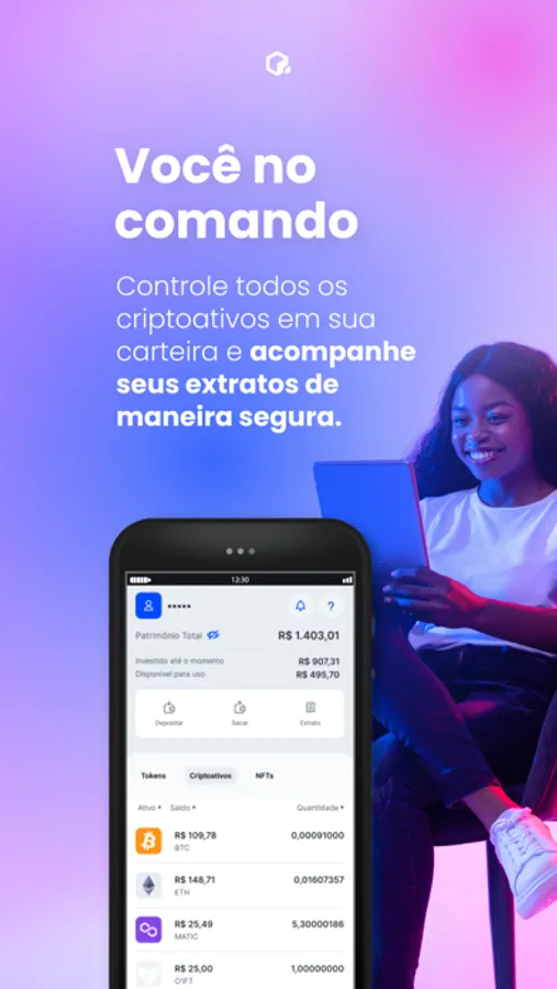 Com o app da Liqi você tem todo o universo cripto na palma da sua mão para investir em bitcoin, uma grande variedade de tokens de ativos e criptomoedas com segurança.