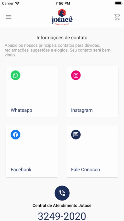 O App Jotacê foi criado para oferecer Conforto, Comodidade e Praticidade para o mercado de Fortaleza e Região Metropolitana que aprecia cortes de carnes e acompanhamentos da mais alta qualidade. Disponibilizamos aos nossos Clientes um novo canal de compras e de comunicação direto. Contamos com a credibilidade e experiência de mais de 10 anos atendendo o mercado cearense. Baixe o nosso aplicativo e receba seus produtos no conforto do seu lar!