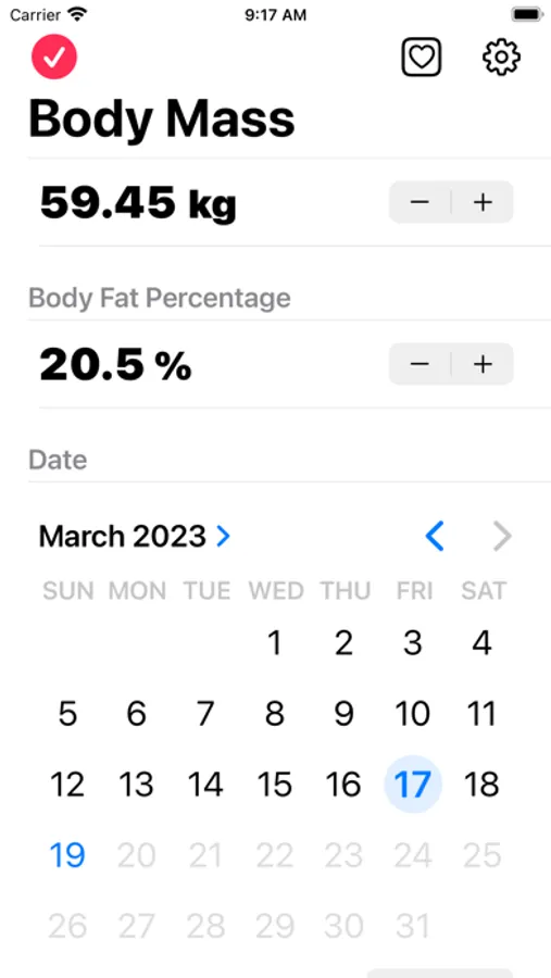 People frequently measure their weight and body fat percentage daily using a scale. Many iPhone users register their weight and body fat percentage data on "Health" app. The best solution is to use a smart scale that works with "Health" app and automatically stores measurements, but they are expensive and inaccessible. Manual data registration is possible in "Health" app, but "Health" app is not designed for daily manual data registration. Therefore, manually entering data that occur continuously daily, such as weight measurements, is a very time-consuming and stressful experience. This app was developed to solve such problems.