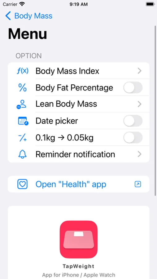 - Intend to register the data into "Health" app every time, after measuring by a scale.