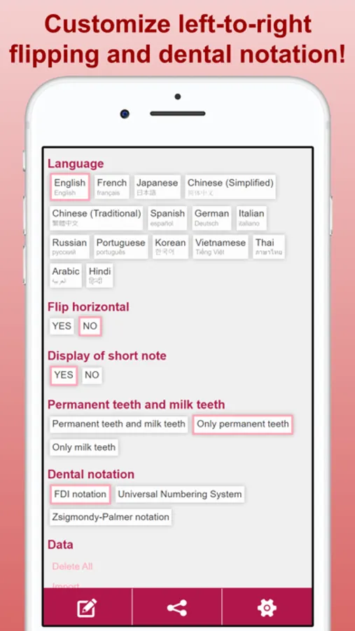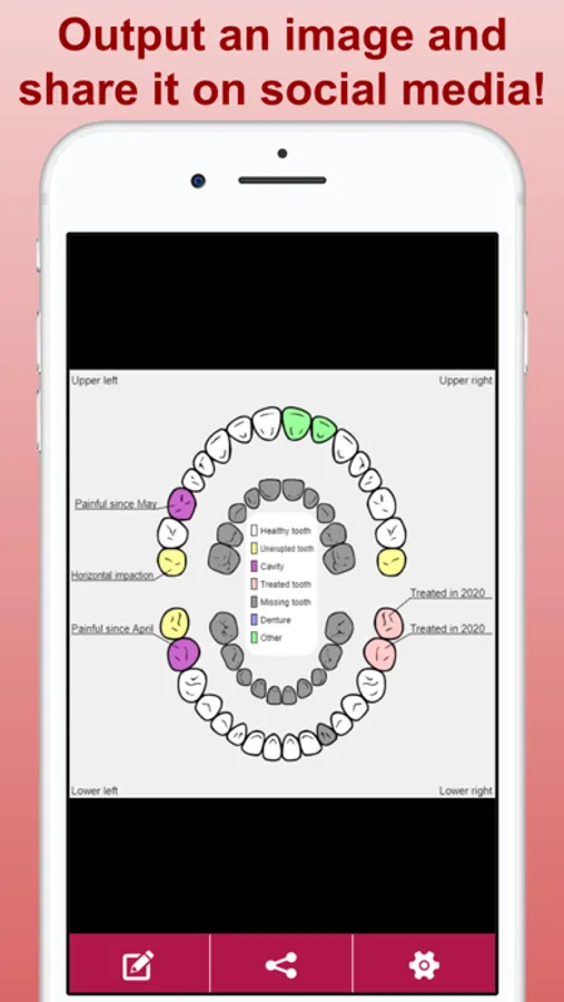 The condition and notes of the teeth can be saved as an image in the device and shared through various social media, such as Instagram, Twitter, Facebook and LINE.