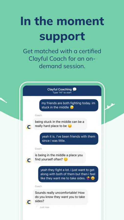 Clayful is a community of certified coaches who engage in text-based, 1:1 coaching chats. Coaching is available at a moment's notice, within the hours of 7am - 10pm PST.