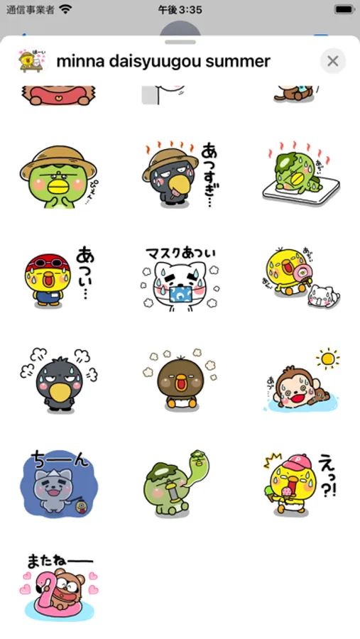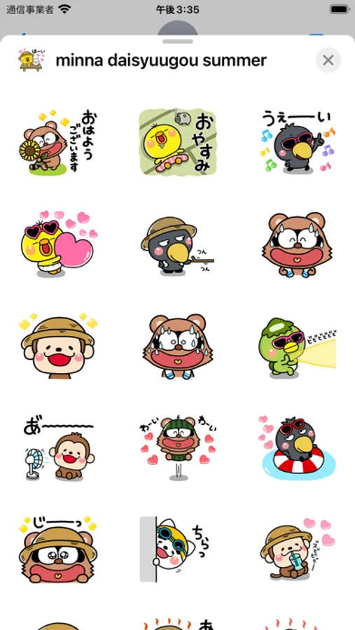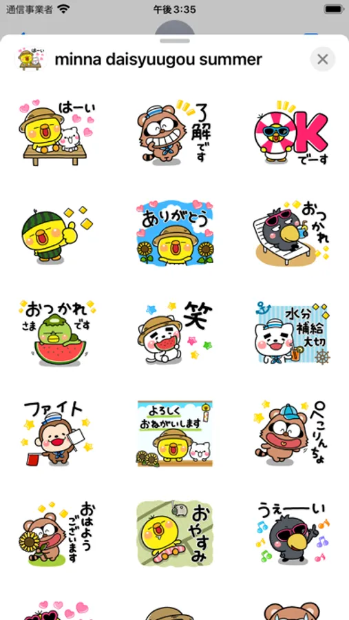 みんな大集合の夏のステッカーです。【作:いしいともこ】